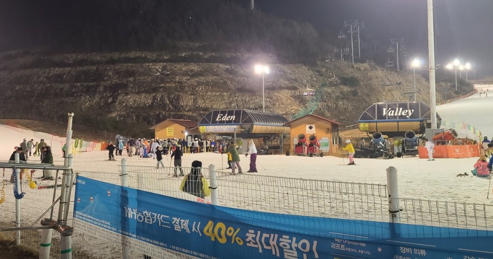 에덴밸리 리조트는 겨울 스키뿐만 아니라 사계절 내내 다양한 레저 활동을 즐길 수 있는 곳이에요. 특히 겨울에는 스키와 보드를 중심으로 다양한 이벤트가 열려 데이트 코스에 딱이랍니다.